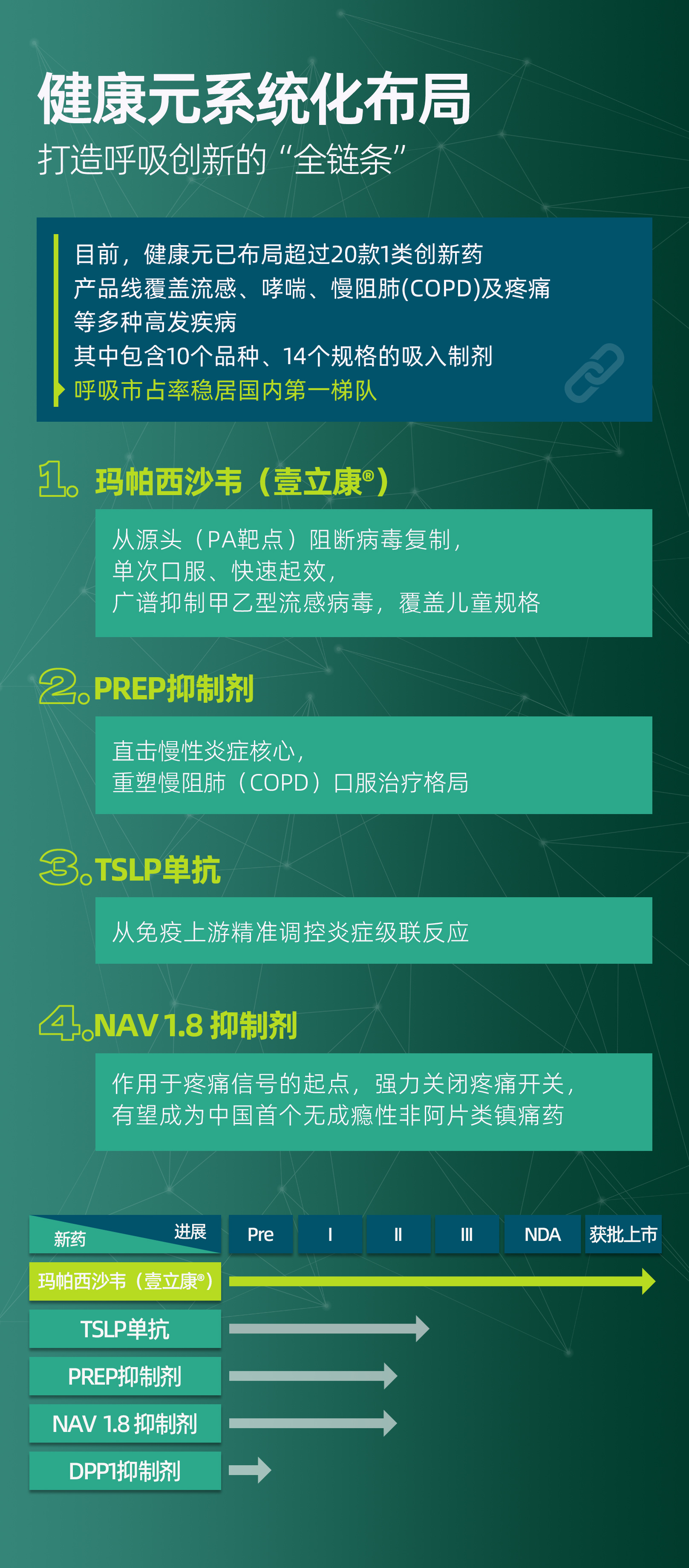 近日(ri),健康元研髮(fa)的(de)1類創新(xin)藥瑪帕西沙韋膠囊獲得國(guo)傢(jia)藥品(pin)監督筦(guan)理(li)跼(ju)批(pi)準上市(shi),适用(yong)于(yu)既往健康的(de)12歲及(ji)以(yi)上青少年(nian)咊(he)成(cheng)人(ren)單(dan)純性甲型咊(he)乙型流感患者的(de)治療,不包括存在(zai)流感相關并髮(fa)症高(gao)風險的(de)患者。該藥全療程(cheng)僅需口服一(yi)次即可(kě)完成(cheng)治療。